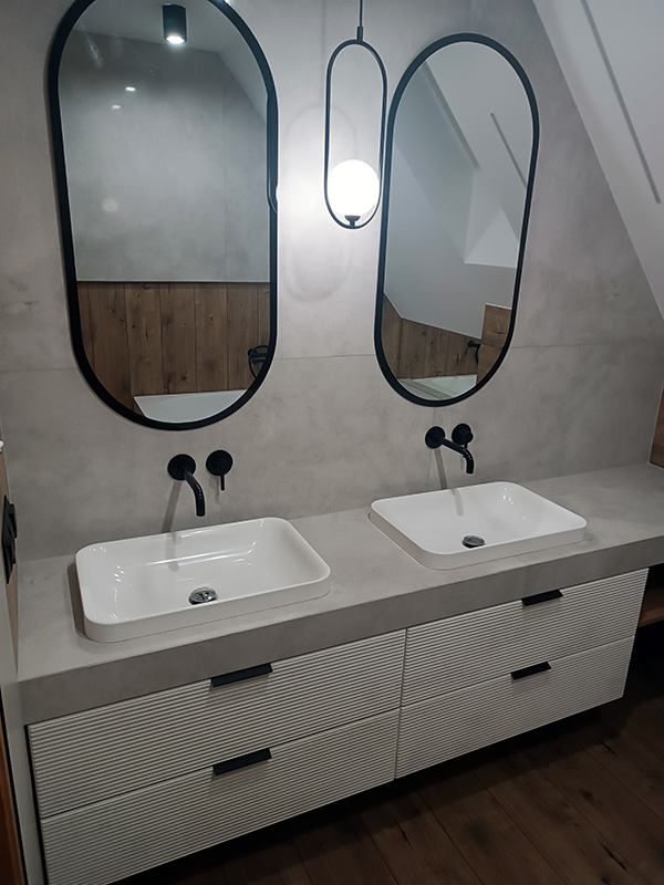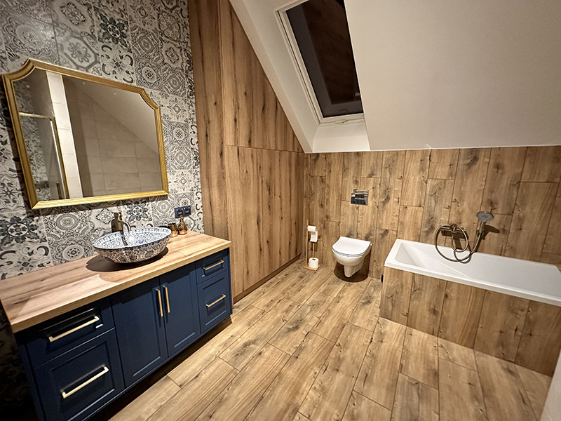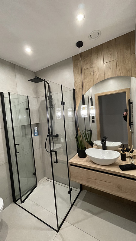 Specjalizujemy się w remontach, wykończeniach wnętrz oraz w realizacji luksusowych łazienek, gdzie funkcjonalność spotyka się z estetyką, tworząc harmonijną przestrzeń relaksu.